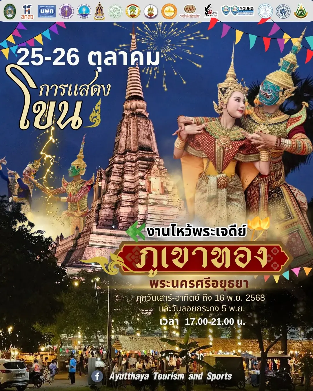 Welcome the cool season with Khon dance performances, traditional drum shows, and a cultural market filled with food and crafts — a perfect warm-up before Loy Krathong week.