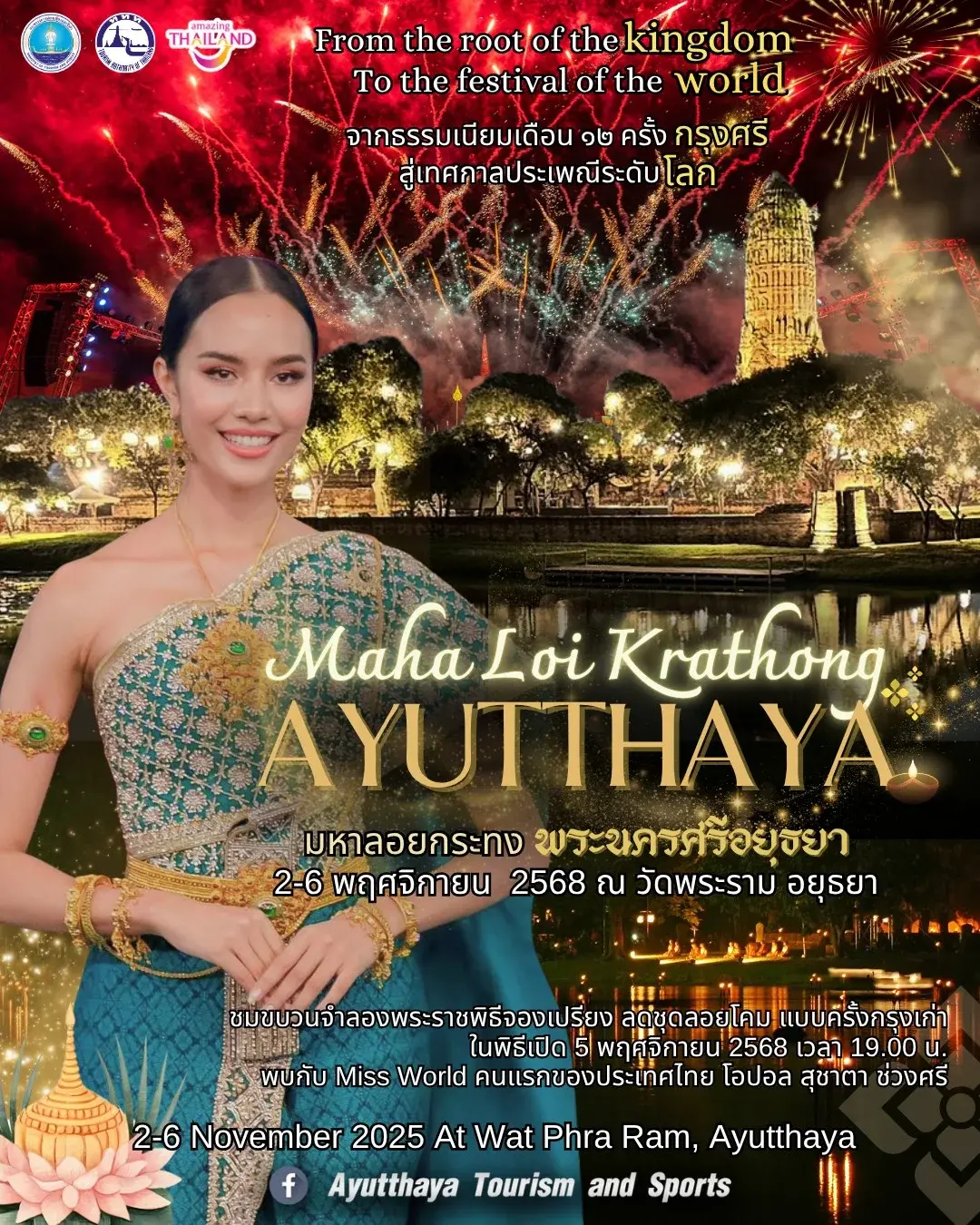 The 2025 celebration, known as Maha Loi Krathong @ Ayutthaya, will be held at Wat Phra Ram in the
