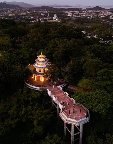 บันทึกวิวพาโนรามาทั้งเกาะภูเก็ตที่เขารัง เสน่ห์ตรงนี้คือการผสานธรรมชาติกับวัฒนธรรมและสถาปัตยกรรมยุโรป ทุกย่างก้าวบนยอดเขารู้สึกเหมือนช่วงเวลาชีวิตถูกต่อเติมด้วยแรงบันดาลใจ ใครชอบสายคาเฟ่ต้องไม่พลาดกาแฟดี ๆ กับแสงแดดยามเช้า