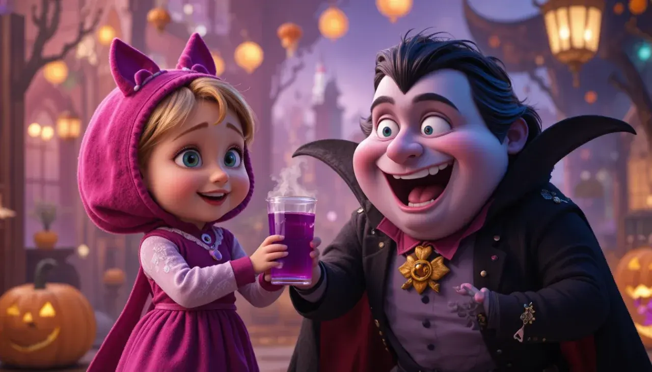 Masha ตื่นเต้นสุดขีดจนต้องลองทุกอย่าง — ทั้งชิมน้ำฟักทองวิ้งค์✨, ปาเป้าผีหัวฟักทอง 🎯, เล่นม้าหมุนค้างคาว 🐴🦇 และขึ้นชิงช้าสวรรค์ยักษ์ที่มีแสงไฟระยิบระยับเหมือนอยู่ในความฝัน 🎡