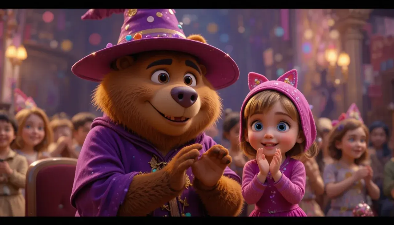 หมี Brown ลงแข่งในชุด “มัมมี่หมี” พันผ้าขาวเต็มตัวแล้วเผลอพัน Masha ไปด้วย 🩹🤣 ก่อนทั้งคู่ขึ้นเวทีเต้นโชว์เพลง “Monster Mash” จนคนดูหัวเราะและปรบมือสนั่นเมือง!