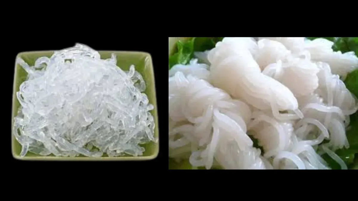 - ที่มา: ทำมาจาก สาหร่ายทะเลสีน้ำตาล (Kelp) โดยนำมาสกัดจนได้เส้นที่ใส อวบ และหนากว่าวุ้นเส้น
