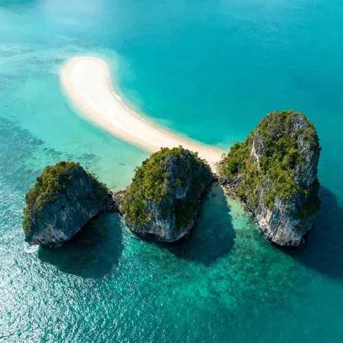 ปรากฏการณ์ทางธรรมชาติของสามเกาะที่เชื่อมต่อกันเป็นสันทรายกลางทะเล เผยให้เห็นทางเดินเมื่อน้ำทะเลลด ช่วงเวลานี้เหมาะกับการเดินเล่น ถ่ายรูป และชมความสวยงามของทะเลกระบี่