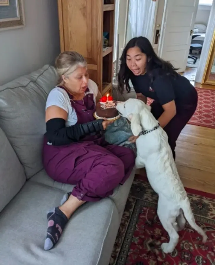2. ฉันเซอร์ไพรส์วันเกิด คุณแม่ของฉัน แต่ปรากฏว่า สุนัขของฉันตัดสินใจว่ามันอยากกินเค้กวันเกิดของคุณแม่ฉันด้วย