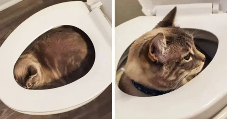 4. เพราะไม่มีที่ซ่อนเพียงพอสำหรับเจ้าแมวน้อยผู้น่าสงสารตัวนี้ ดังนั้นมันจึงต้องซ่อนตัวอยู่ในโถส้วมที่เต็มไปด้วยน้ำ!