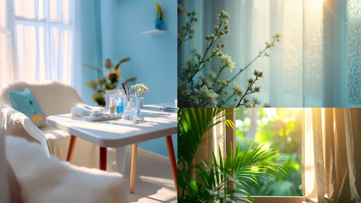 6.การตกแต่งห้อง ทาสีห้องมีส่วนเกี่ยวข้องที่ทำให้บ้านเย็น หรือ ร้อนขึ้น การเลือกสีทาภายในบ้านเป็นโทนเย็น จะช่วยให้อากาศภายในบ้านเย็นมากขึ้น สีโทนเย็นมีให้เลือกมากมาย เช่น โทนสีฟ้า สีเขียวซีด สีม่วงอ่อน ให้ความรู้สึกร่มรื่น เย็นสบาย