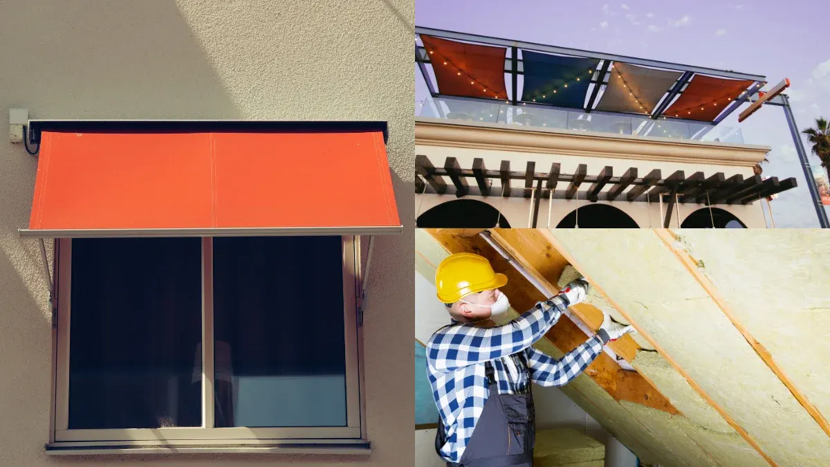 3.ติดตั้งกันสาด ซุ้มบังแดด นอกจากจะกันฝนกันสาดยังช่วยกันแดด และ ความร้อนที่สอดส่องเข้ามาในตัวห้องได้ดี ทำให้มีบริเวณร่มเงาเพิ่มมากขึ้น อากาศร้อนน้อยลง
