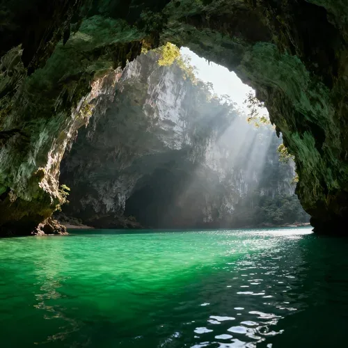 น้ำภายในถ้ำสีเขียวมรกตงดงาม จากแสงแดดที่ส่องสะท้อนเข้ามาภายในถ้ำ ใครอยากแช่น้ำลอยตัวเย็น ๆ ผ่านถ้ำต้องมาลองสักครั้ง ถ้ำมรกต เป็นแหล่งท่องเที่ยวยอดฮิตที่หากมาเที่ยวจังหวัดตรัง