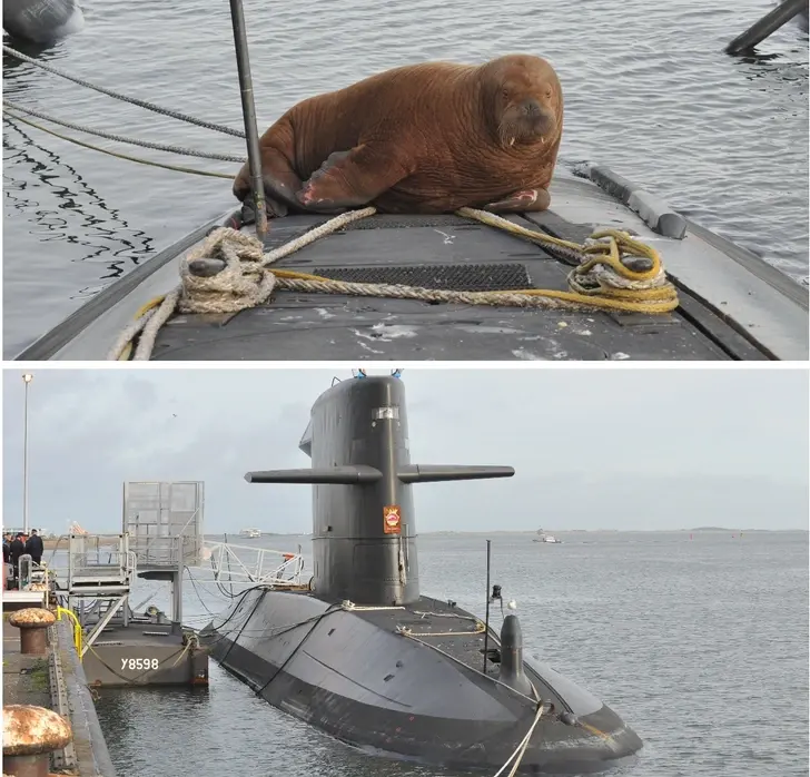 2. เจ้าวอลรัสตัวนี้ที่ปีนขึ้นไปบนเรือที่เทียบข้างเรือดำน้ำที่ชื่อวอลรัสของกองทัพเรือเนเธอร์แลนด์