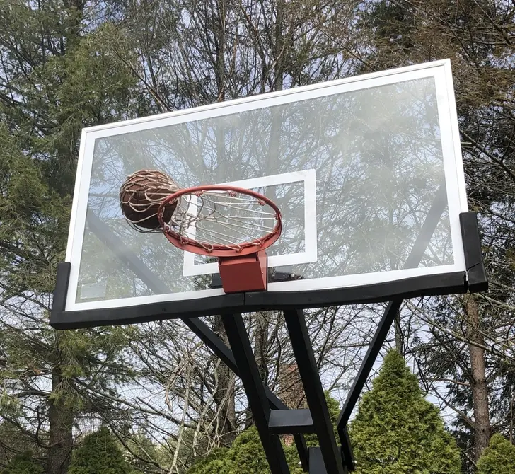 7. น้องชายของฉันโยนลูกบาสเก็ตบอลขึ้นไปติดแบบนี้