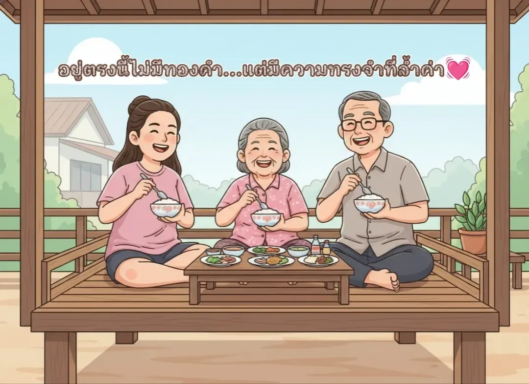 ฉันไม่ได้มีทองคำ ไม่มีเงินเดือนหลักหมื่นเหมือนคนอื่น แต่ทุกวันที่ได้ตื่นมาเห็นรอยยิ้มของตากับยายได้ยินเสียงหัวเราะของคนสองคนนี้ มันคือรางวัลชีวิตที่มีค่ามากกว่าทองคำทั้งโลก