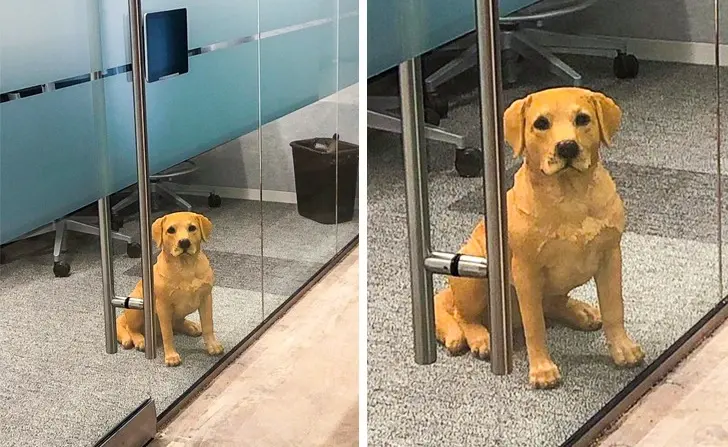 3. ฉันอยู่ที่ทำงานแล้วรู้สึกหงุดหงิดมากที่ใครบางคนลืมน้องหมาไว้ที่ออฟฟิศ ฉันเลยเข้าไปเล่นกับมัน แต่ปรากฏว่ามันเป็นรูปปั้น!
