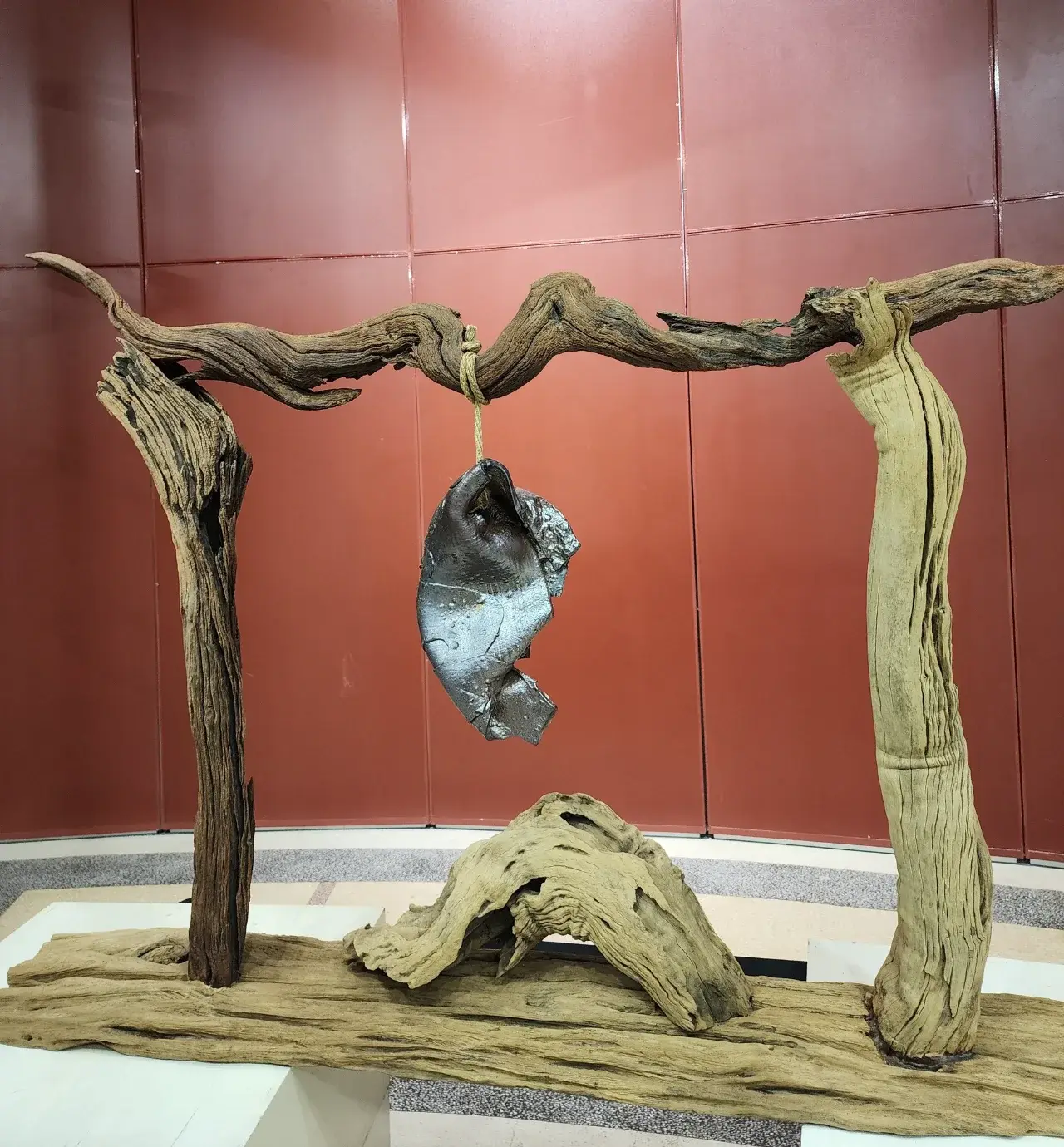 เรามาดูในส่วนของชิ้นนี้นั้น มองไปที่เสาทั้งสองข้างนั้น และสิ่งที่รองด้านล่างนั้นคือในส่วนของลำตันของต้นไม้ที่มีอายุยาวนาน หากว่าไปดูที่เถียงนาที่พ่อนั้นสร้างมีท่อนไม้ในแบบนี้คือเยอะมา ในต่างประเทศนั้นนำมาโชว์ กลายเป็นในส่วนของประติมากรรมของธรรมชาติที่เกิดขึ้นเองด้วยอุณหภูมิธรรมชาติที่แตกต่างกัน พอเรานั้นมามองสวยอย่างแตกต่างเหมือนกัน