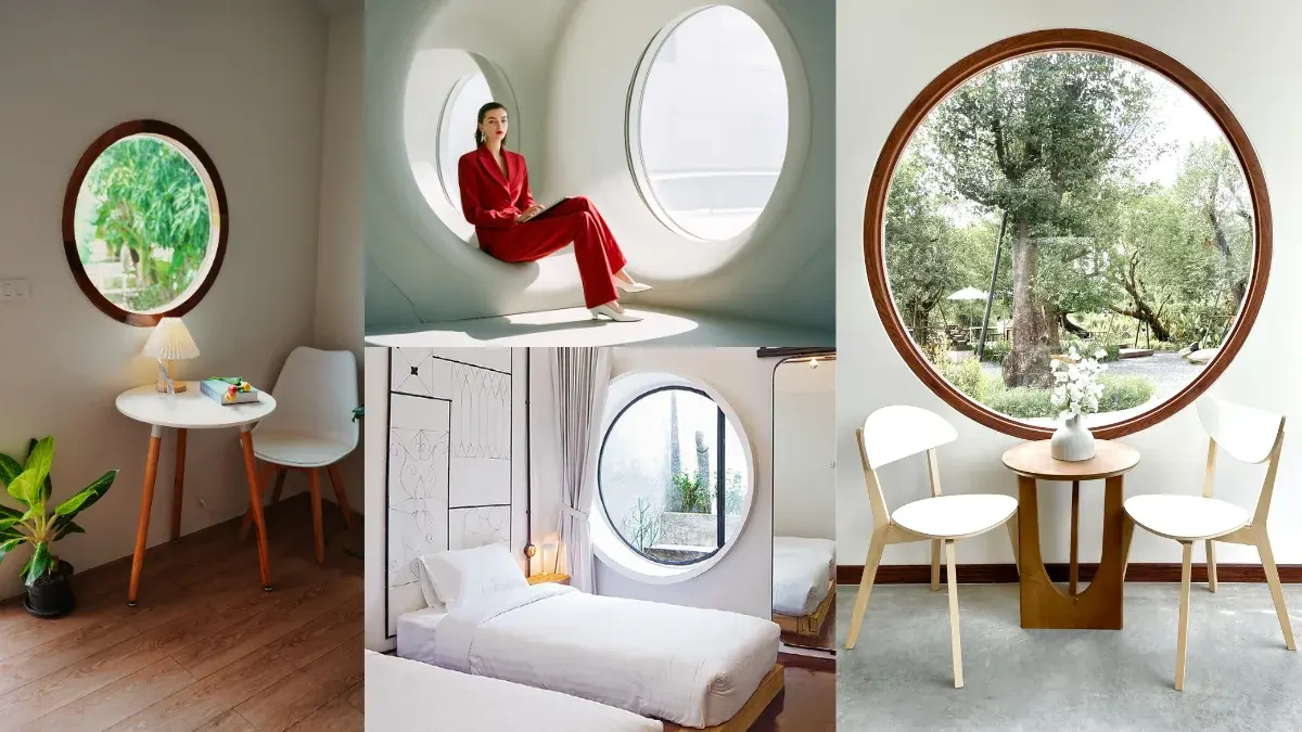 1.หน้าต่างวงกลม เบรกความแข็งกระด้างของห้องสี่เหลี่ยมด้วยหน้าต่างวงกลมขนาดใหญ่ ทําเฟรมวงกลมสีขาวจากท่อน้ำที่มีขนาด เส้นผ่านศูนย์กลาง 1.20 เมตร ให้ยื่น ออกมา 30-45 เซนติเมตร นอกจากจะเป็นกรอบหน้าต่างแล้วยังสามารถเป็นที่นั่งเล่นชมวิวภายนอก หรือ ถ้าคุณอยากให้หน้าต่างเปิดออกได้ก็สามารถ แบ่งพื้นที่ 3 ใน 4 ของกระจก แล้วใส่วงกบลงไป จากนั้นติดบานพับ เท่านี้หน้าต่างวงกลมก็เป็นทั้งที่นั่งเล่นและช่องเปิดพิเศษ ออกไปชมสวนด้านนอกได้ในหนึ่งเดียว