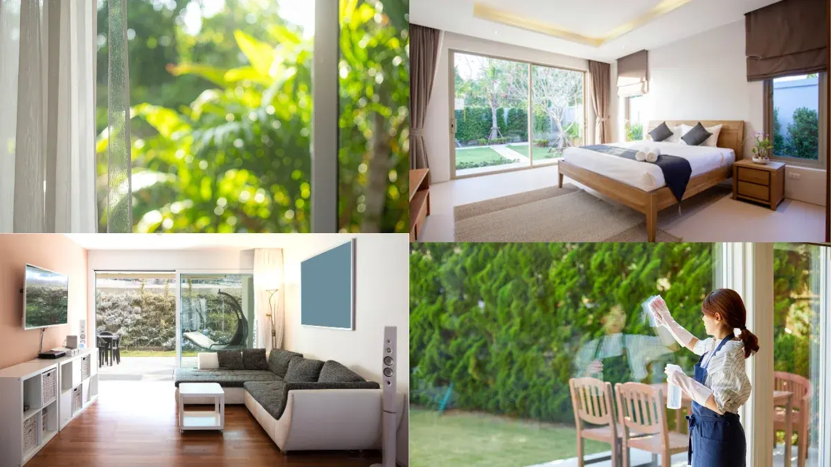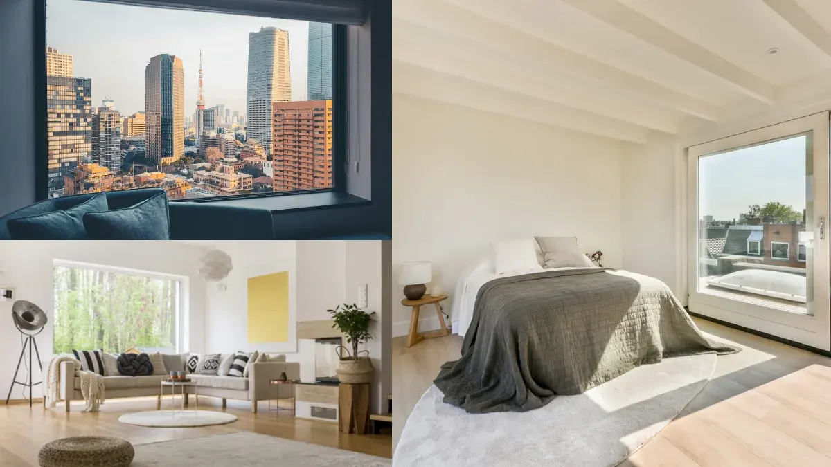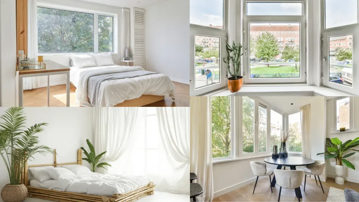 4.หน้าต่างห้องนอนสไตล์มินิมอล เหมาะสำหรับหน้าต่างกระจกบานใหญ่ ใช้กรอบหน้าต่างสีขาว อาจเลือกเป็นวัสดุ uPVC ที่ทำความสะอาดได้ง่าย หากต้องการเปิดหน้าต่างเพื่อระบายอากาศ สามารถติดตั้งหน้าต่างบานเปิดอีกบานหนึ่งได้ เพื่อให้ใช้งานได้อย่างสะดวก