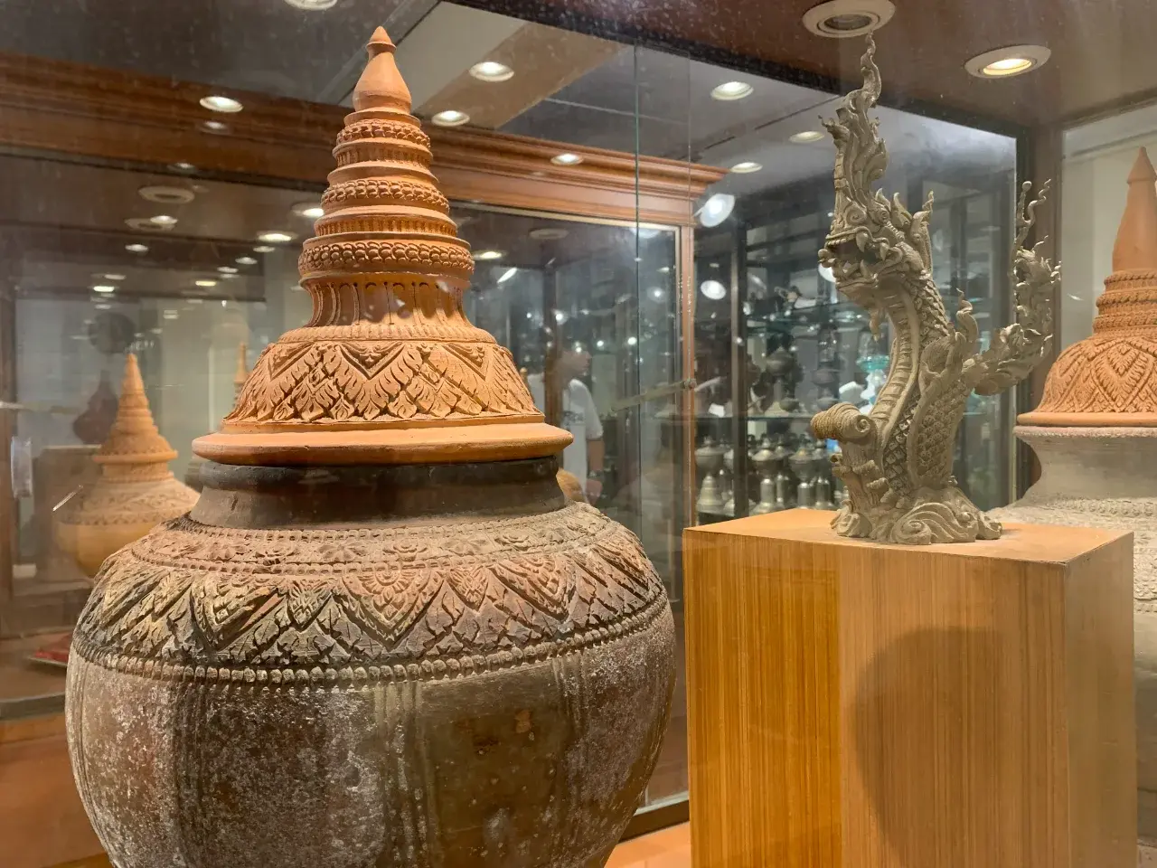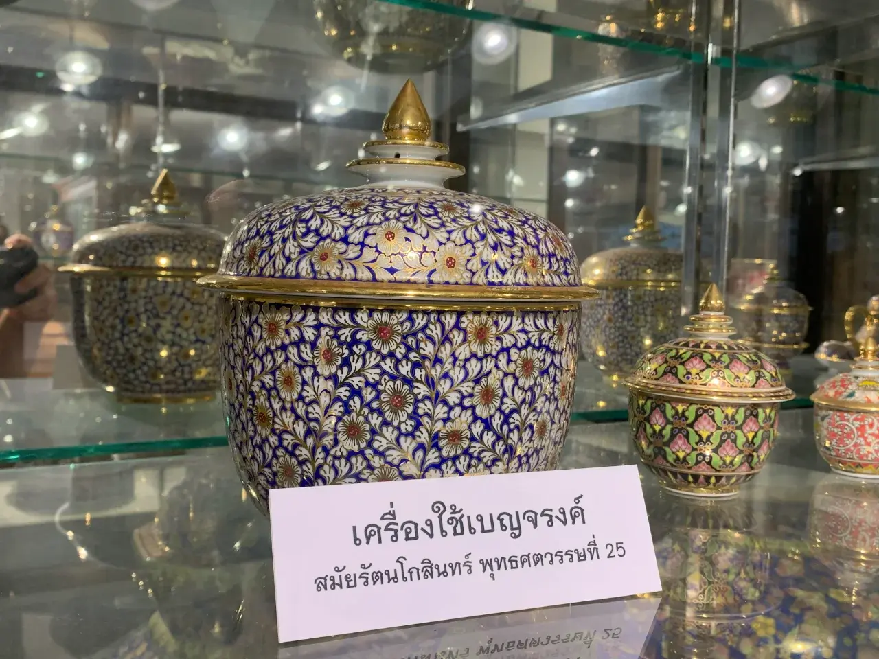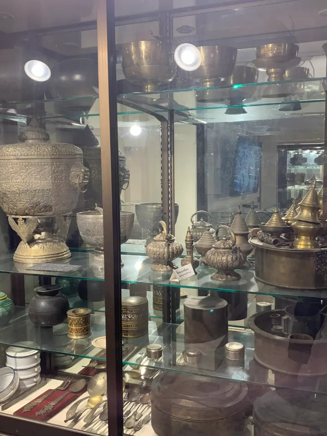 ที่หอไทยนิทัศน์เครื่องปั้นดินเผา เพื่อนๆ ยังจะได้ชมเครื่องทองสัมฤทธิ์ เช่น ชุดน้ำชา กาต้มน้ำ โคมไฟ และเหยือกแก้ว โดยมีงานศิลปะตะวันตกจากยุโรปที่ย้อนไปถึงสมัยพระบาทสมเด็จพระจุลจอมเกล้าเจ้าอยู่หัวอีกด้วย