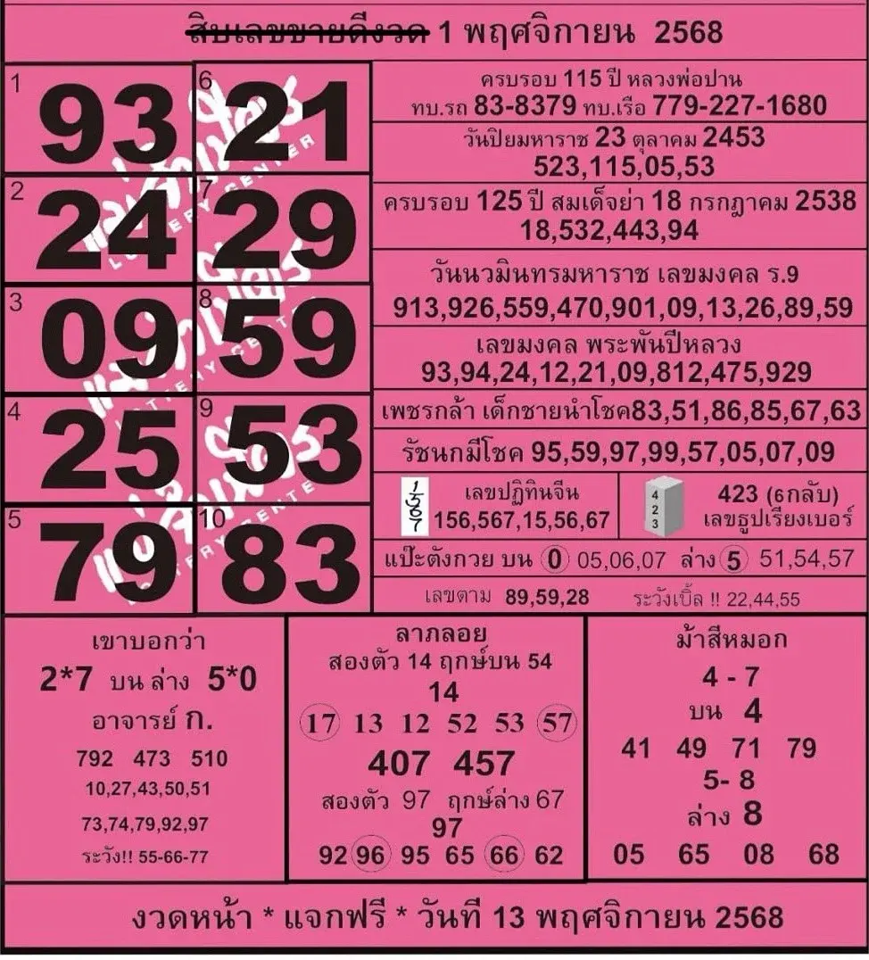 มาแล้ว 10 เลขเด็ดขายดีแม่จำเนียรงวด 1 พ.ย 2568