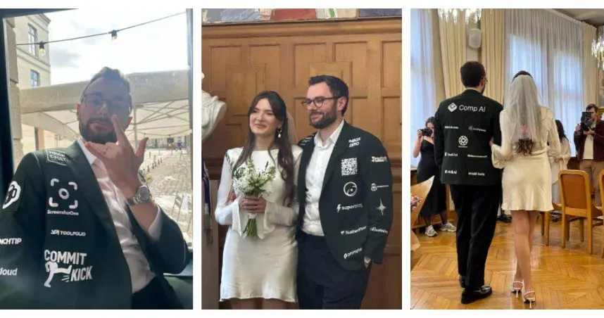 เคล็ดลับหาเงินแต่งงานสุดล้ำ! เจ้าบ่าวขายพื้นที่บนสูทเพื่อหาสปอนเซอร์ งานแต่ง
