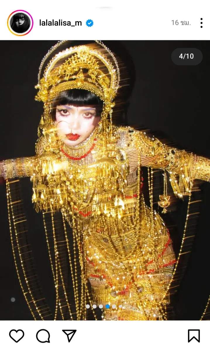 ลิซ่าเลือกใส่ชุด Sirena โดยลุคนี้ได้รับแรงบันดาลใจจาก … ภาพยนตร์ เรื่อง Love, Death, Robots เป็นภาพยนตร์แนวแฟนตาซี-สยองขวัญ-เชิงสัญลักษณ์ ซึ่งเป็นชุดสีทอง ที่ประดับด้วยทองคำ เหรียญ และอัญมณีเต็มตัว ซึ่งแตกต่างจากลุคที่เราเห็นบ่อย ๆ ซึ่งลุคนี้เป็นเมคอัพแนวศิลปะร่วมสมัยที่มีความหมายเชิงสัญลักษณ์สูง โดยลักษณะเด่นของเมคอัพในลุคนี้ คือการแต่งหน้าเกินจริง เน้นการสื่ออารมณ์และคาแรกเตอร์ของตัวละครมากกว่าความสวยตามธรรมชาติ มีความเข้มข้น จัดจ้าน และมีลูกเล่นด้านสี แสง และประกายทองสะท้อนแสงคล้ายเครื่องประดับโลหะ โดยในลุคนี้ลิซ่าได้โพสต์คลิปผ่าน ช่องทางTikTok โดยมีผู้กดไลค์กว่า 7ล้านครั้ง นอกจากนี้ยังมีคนกดไลค์ใน Instagram ถึง 5ล้านคน