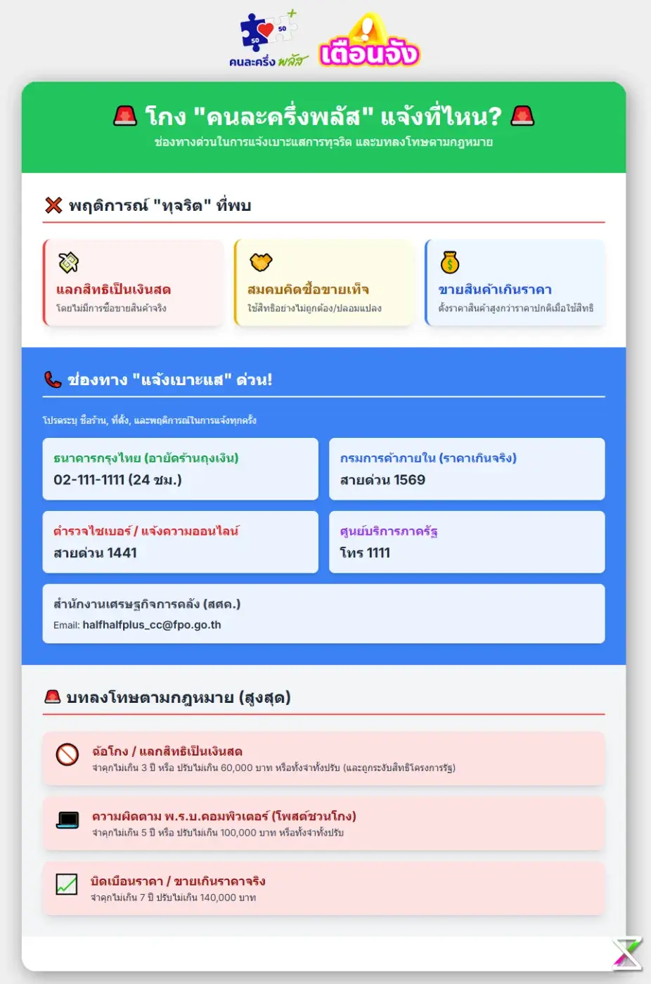 📞 ช่องทางแจ้งเบาะแสการทุจริต "คนละครึ่งพลัส"