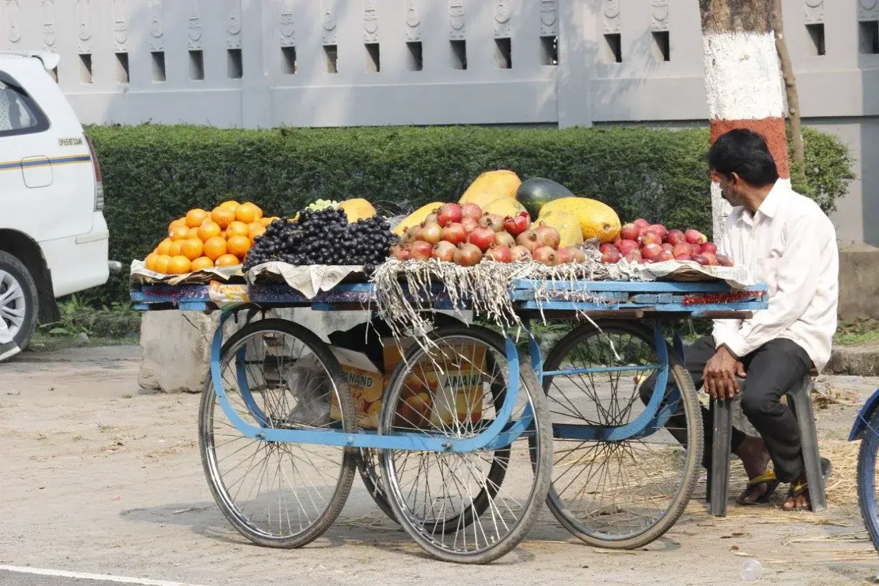 การขายหน้าวัดนั้นดีสำหรับเขานั้นเหมือนกันเพราะว่าคนที่มาทำบุญที่วัดนั้นจะเดินเพื่อที่จะไปซื้อในส่วนของผลไม้ ผลไม้ที่เรานั้นชิมแล้วอร่อยคือทับทิม ทับทิมที่อินเดียนั้นถือว่าอร่อยมากสีแดงสด น้ำหวานอร่อย แกะทานได้ง่าย แต่ว่าเรานั้นไม่เคยซื้อมีแต่บาบูนั้นไปซื้อมาให้ชิม ส้มในส่วนของส้มที่นี่นั้นไม่ค่อยอร่อย เพราะว่าเปลือกของส้มนั้นหนาและรสชาติไม่เปรี้ยวไม่หวาน จืดผิวไม่เหมือนเขียวหวานเท่าไหร่ ส้มละ ต่อมาน่าจะเป็นแตงโม กับมะละกอ ถือว่าผลไม้ของเขานั้นทนทานมากเจอในส่วนของวันหลายวันยังสด