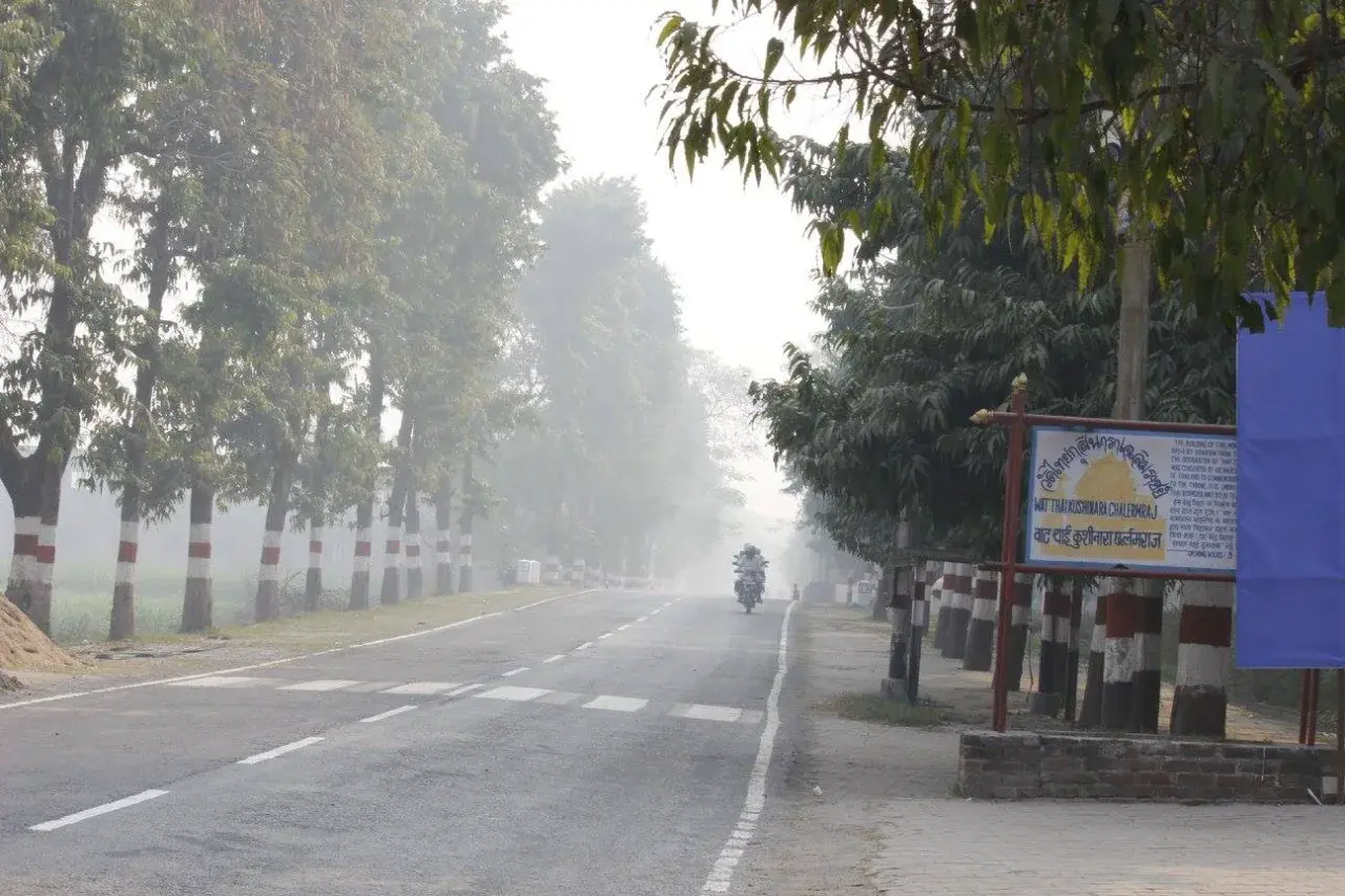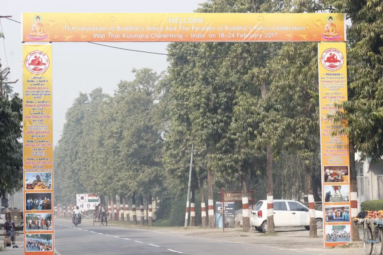 สองข้างทางถนนเส้นนี้หากว่าเรานั้นเดินไปเพื่อที่จะไปในส่วนของสถานที่ในการปรินิพพานเรานั้นจะเห็นในส่วนของต้นไม้นั้นเรียงรายตามระยะความห่างที่เท่ากัน เหมือนว่ามีการวางแผนในการปลูกอย่างดี ถนนนี้เกิดทีหลังเจ้าต้นไม้ ต้นไม้มากกว่าห้าสิบต้นนั้นจึงคงอยู่เพราะว่าหากต้องตัดในส่วนของต้นไม้ไปนั้นจะเสียจำนวนมาก เลยเปลี่ยนกลับมาว่าการใช้ต้นไม้ในการเป็นขอบทางที่จะไม่ให้รถนั้นสามารถที่จะทำอันตายสิ่งก่อสร้างเมื่อมีในส่วนของอุบัติเหตุ