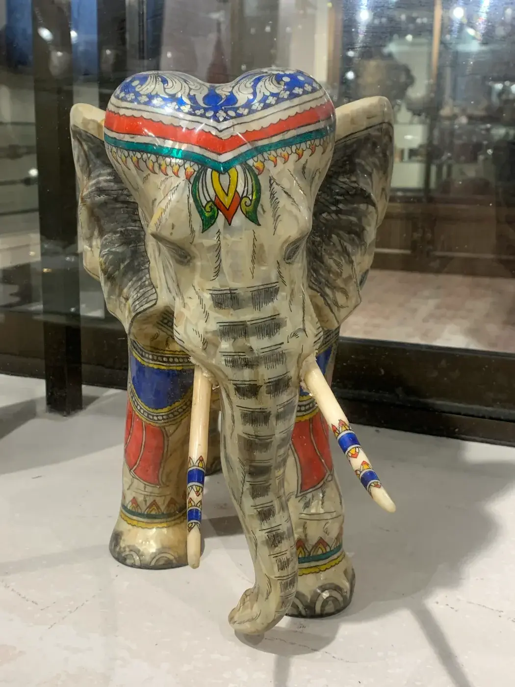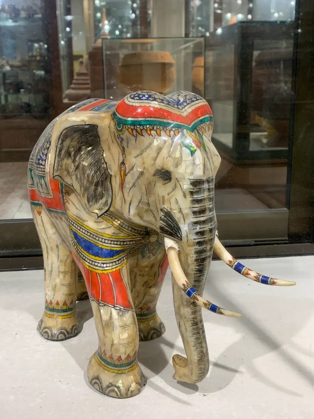 อาทิ รูปปั้นช้างที่มีลวดลายสวยงาม ซึ่งตั้งแต่สมัยโบราณจนถึงปัจจุบัน ช้างถือเป็นสัตว์ที่เสริมบารมีของพระมหากษัตริย์ไทยทุกพระองค์ ในสมัยโบราณ ช้างถูกใช้ในสงคราม และถือเป็นกำลังสำคัญในการรบ ดังนั้น ช้างจึงถือเป็นสัตว์ประจำชาติของคนไทย