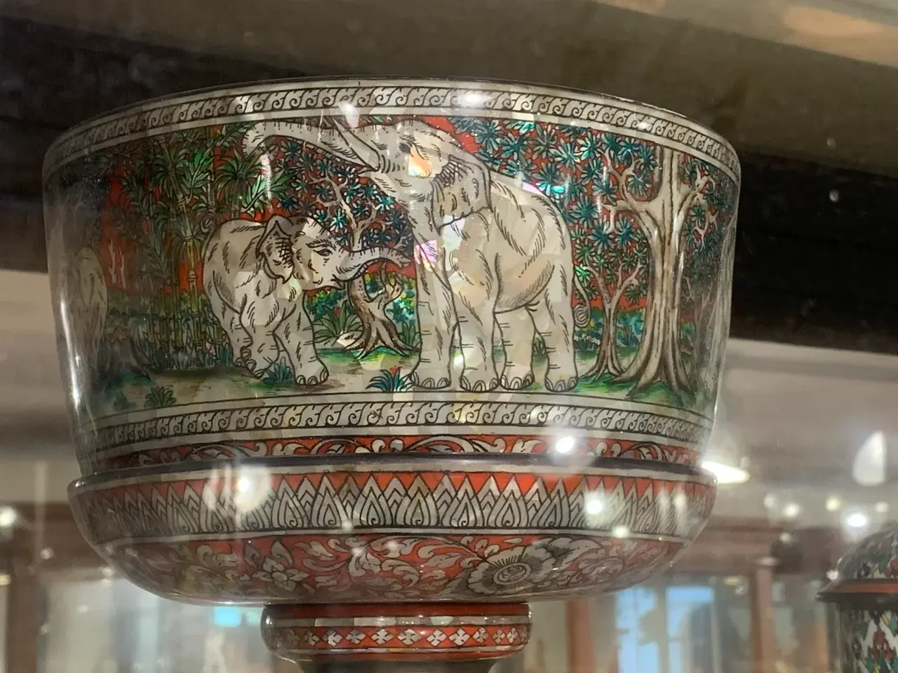 ไม่เพียงแต่มีรูปปั้นช้างเท่านั้น ที่หอไทยนิทัศน์เครื่องปั้นดินเผา ยังมีรูปช้างสวยๆ ปรากฎอยู่บนชามโบราณขนาดยักษ์อีกด้วย