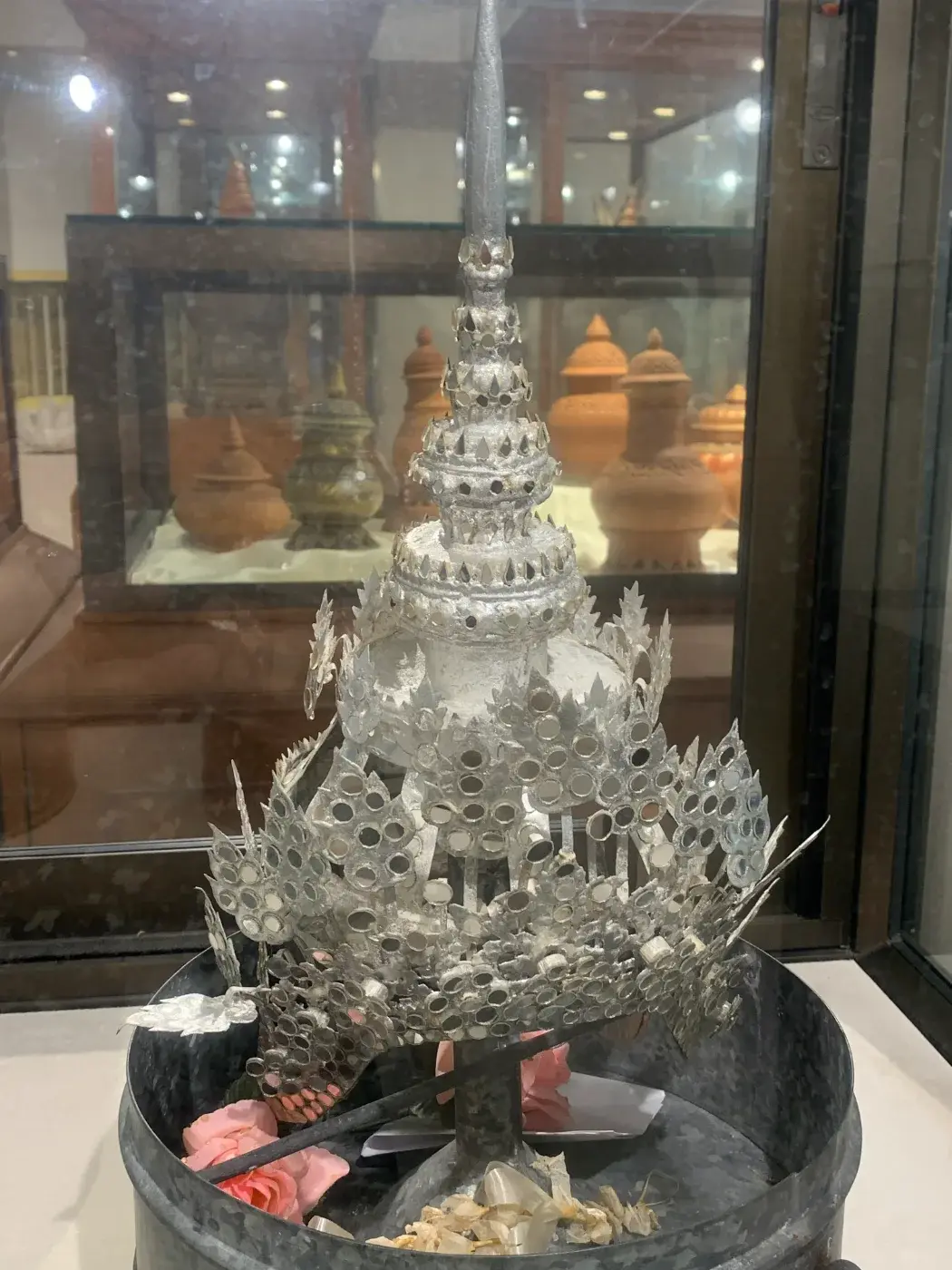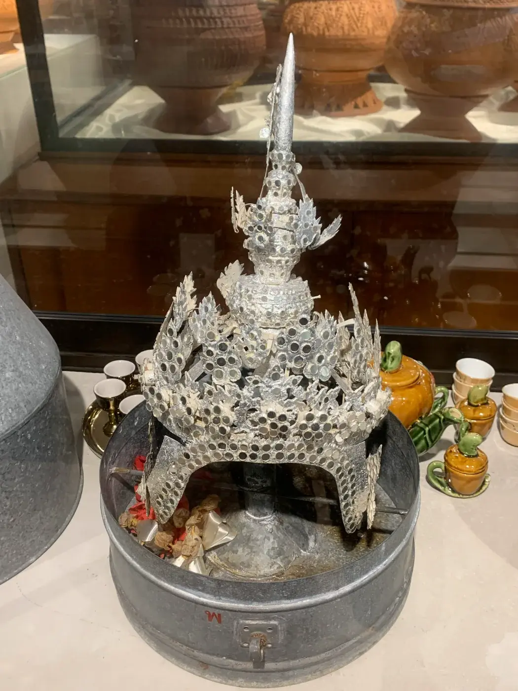 ที่หอไทยนิทัศน์เครื่องปั้นดินเผา มีการจัดแสดงชฎาเงินโบราณซึ่งมีความงดงามตระการตา ซึ่งชฎาเป็นเครื่องประดับศีรษะที่มีความสำคัญในวัฒนธรรมไทยมาตั้งแต่สมัยโบราณ เป็นสัญลักษณ์สำคัญที่สะท้อนถึงความงดงาม ความประณีต และเอกลักษณ์ของศิลปะไทย