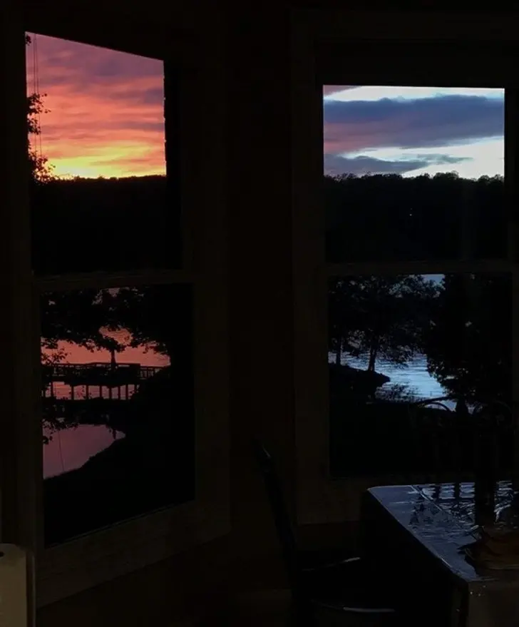 6. วิวพระอาทิตย์ตกนี้เหมือนถูกแบ่งครึ่งให้ดูต่างกันผ่านหน้าต่าง 2 บานของฉัน