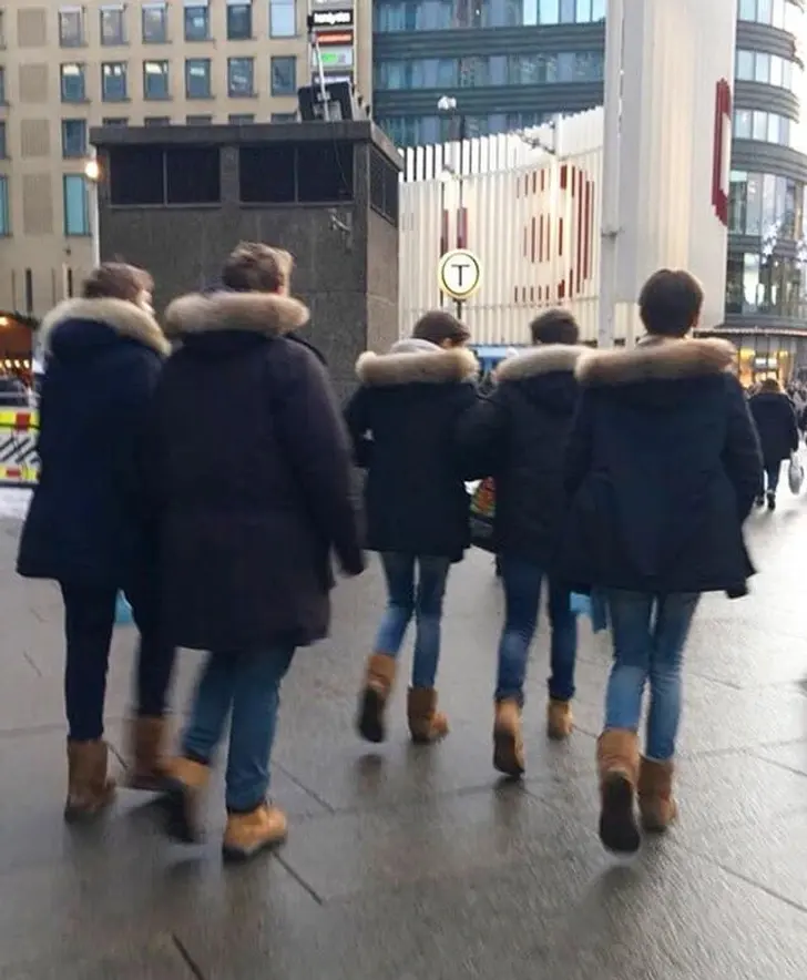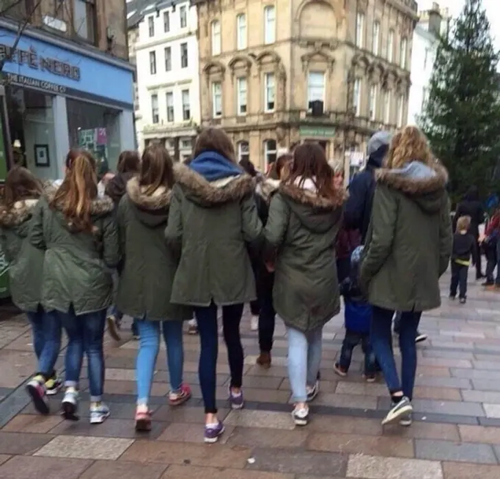 14. ดูเหมือนว่าพวกเธอเหล่านี้จะซื้อเสื้อโค้ทที่ร้านเดียวกันนะ