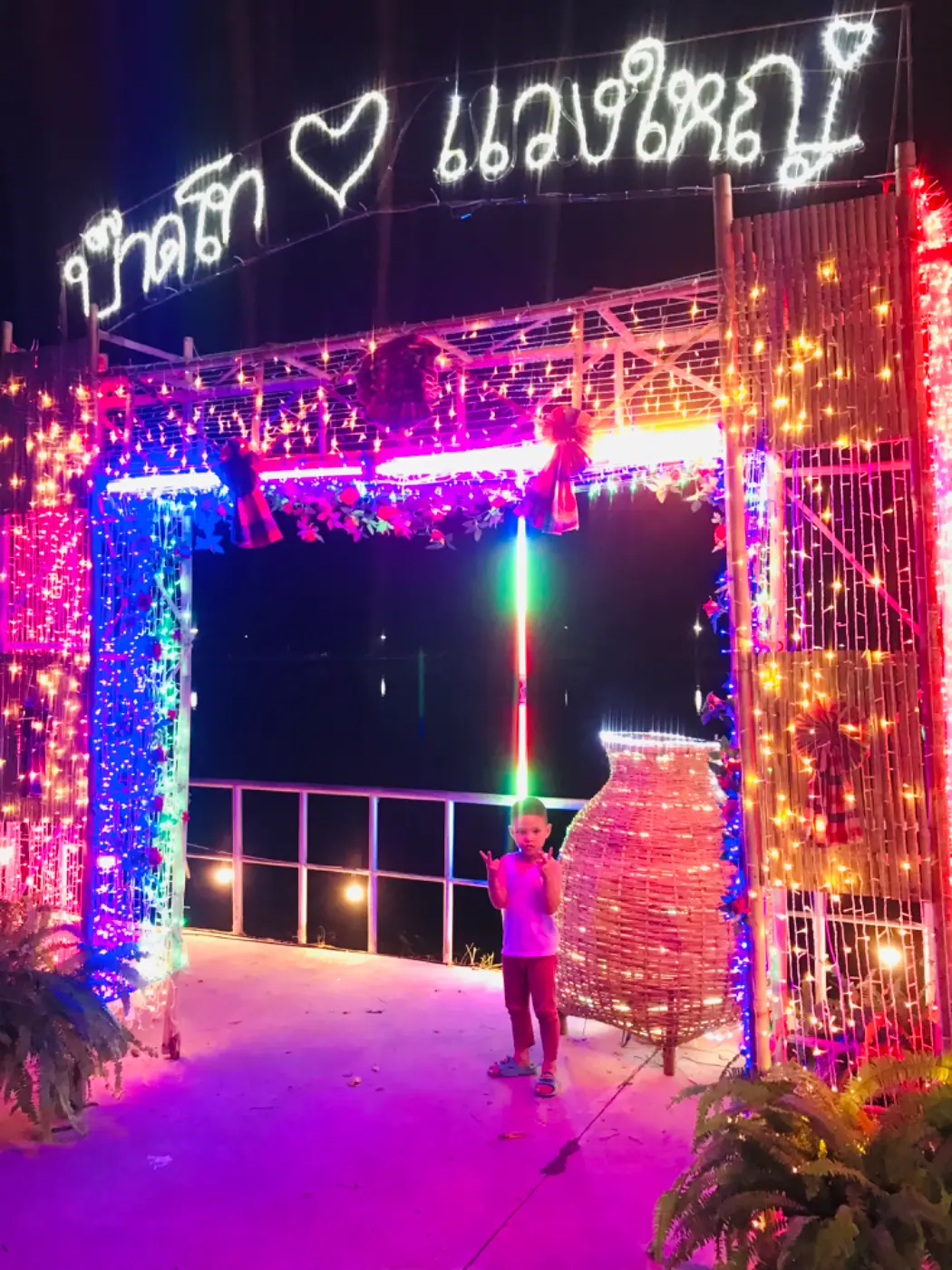 แสงไฟระยิบระยับ หลากสี มุมถ่ายภาพสอดส่องสีสันในส่วนของเรือนพรัตน์ ลอยในสายน้ำ