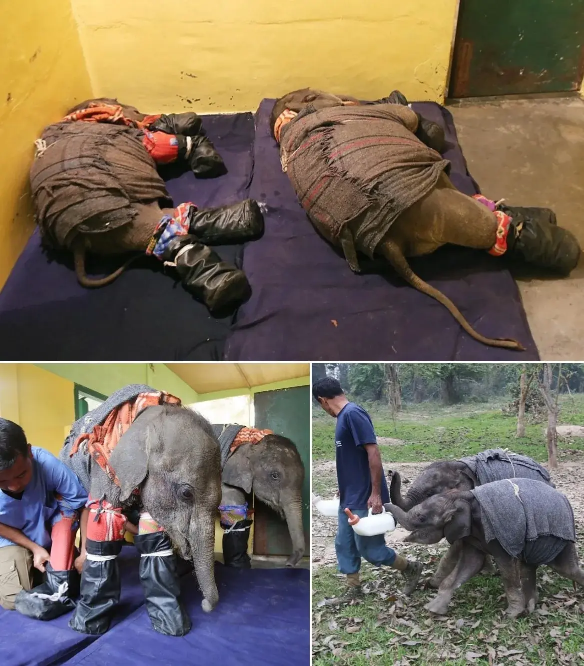 ไม่นานหลังจากนั้น ความคิดที่เต็มไปด้วยความอ่อนโยนก็ถือกำเนิดขึ้น — ลูกช้างทั้งสองถูกห่มด้วยผ้าห่มผืนใหญ่หนานุ่ม พันผ้าพันคอรอบลำคอเล็ก ๆ และสวมถุงเท้ากับบู๊ตสลิปเปอร์จิ๋วเพื่อกันความเย็นจากพื้นแข็ง เย็นวันนั้น ทั้งรูปาและอาชิหลับตาลงในอ้อมอุ่นของผ้าห่ม เสียงสั่นเทิ้มค่อย ๆ เงียบลง เหลือเพียงลมหายใจแผ่วเบาแห่งความสงบ เป็นการหลับที่ยาวนานและปลอดภัยที่สุดในรอบหลายสัปดาห์