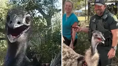 ภาระกิจสุดป่วน เมื่อตำรวจฟลอริดาต้องสวมกุญแจมือจับ "นกอีมู" กลางถนน