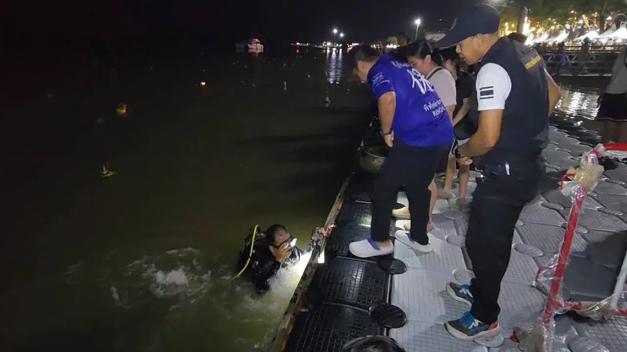 นักดำน้ำฝ่าน้ำเชี่ยว งมหาโทรศัพท์นศ.สาวตกทะเลคืนลอยกระทง