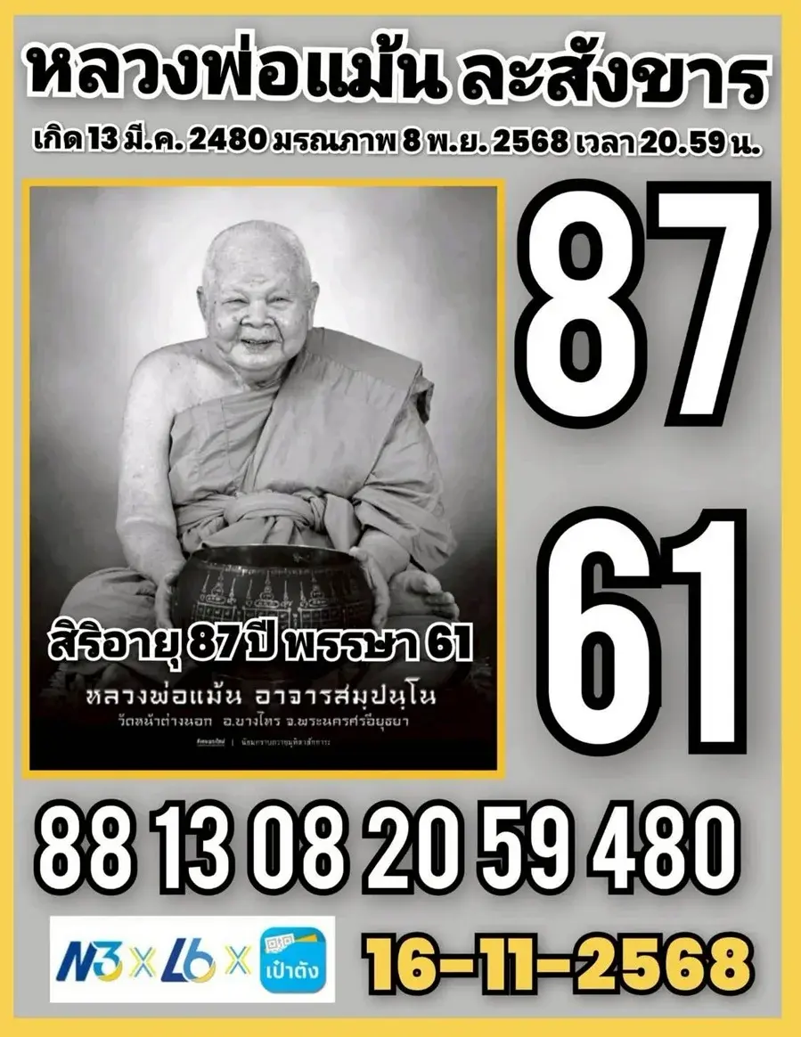 "เลขเด็ดเกจิวัดดัง" งวดวันที่ 16 พฤศจิกายน 68..อยากถูกหวย ส่องเลย!