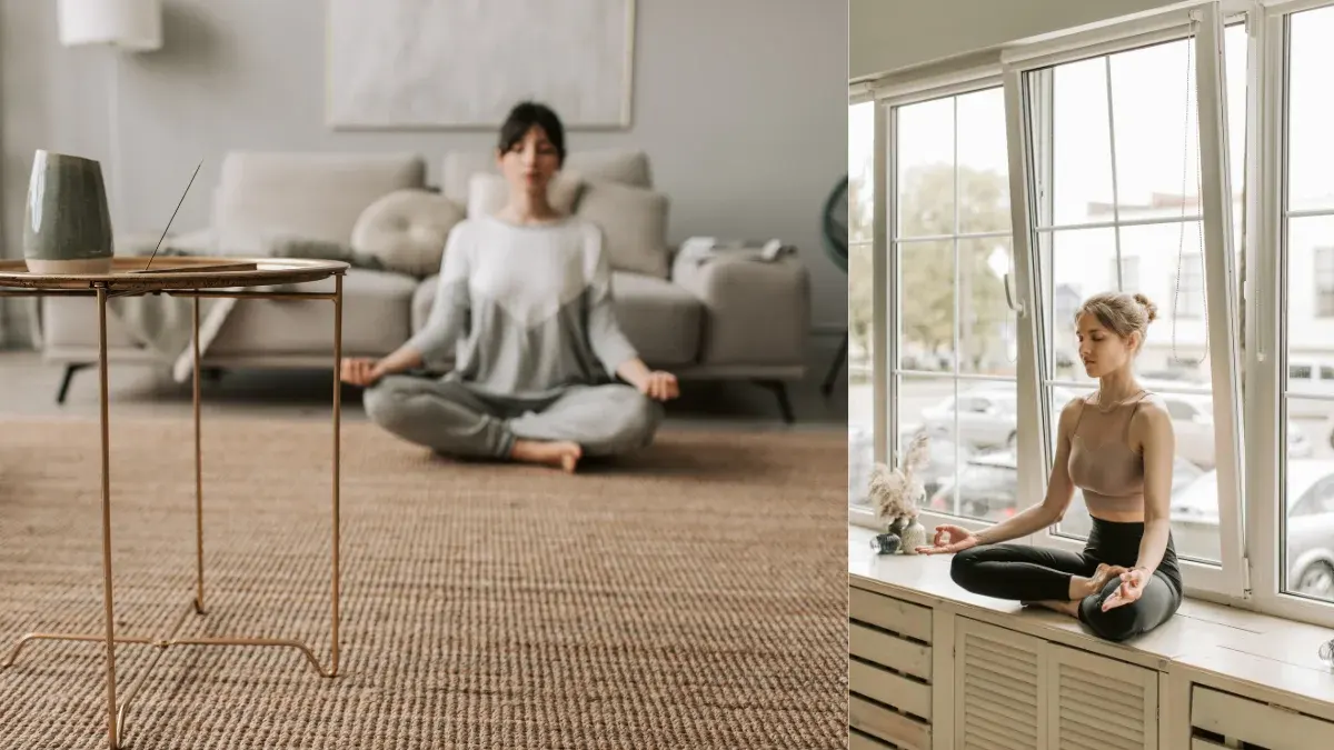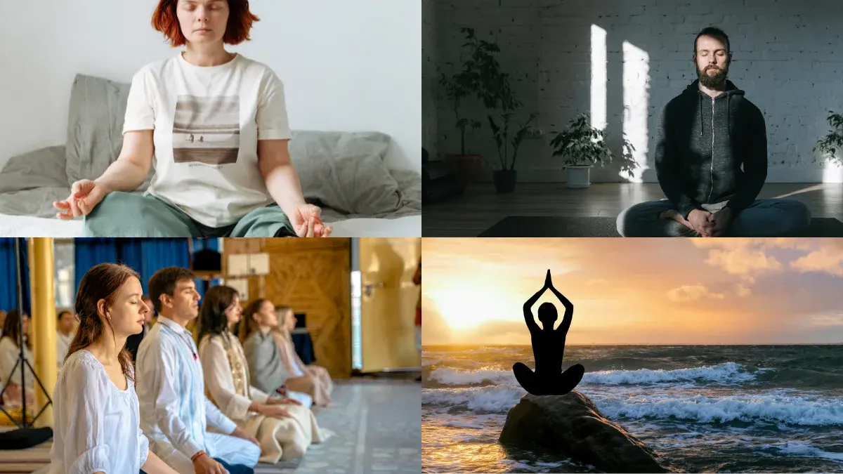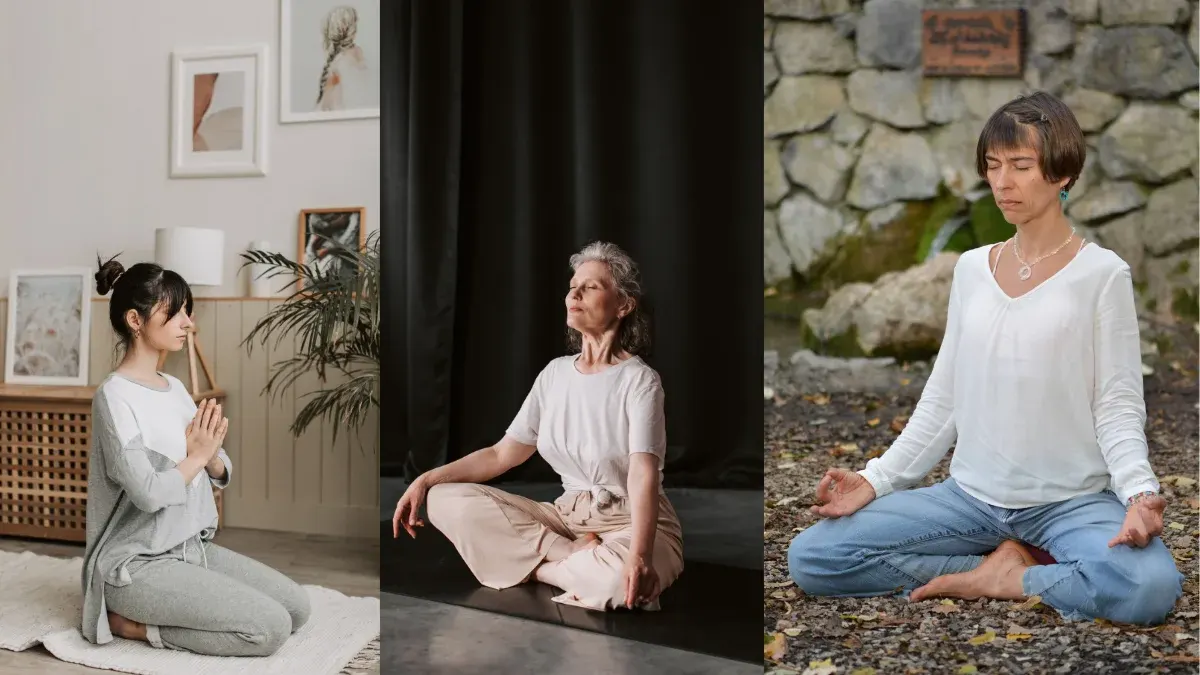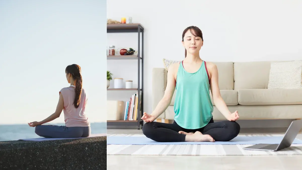 - ท่านั่งสมาธิบนเก้าอี้ นั่งตัวตรงอยู่บนเก้าอี้ ให้เท้าราบกับพื้น มือประสานไว้บนตัก