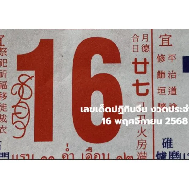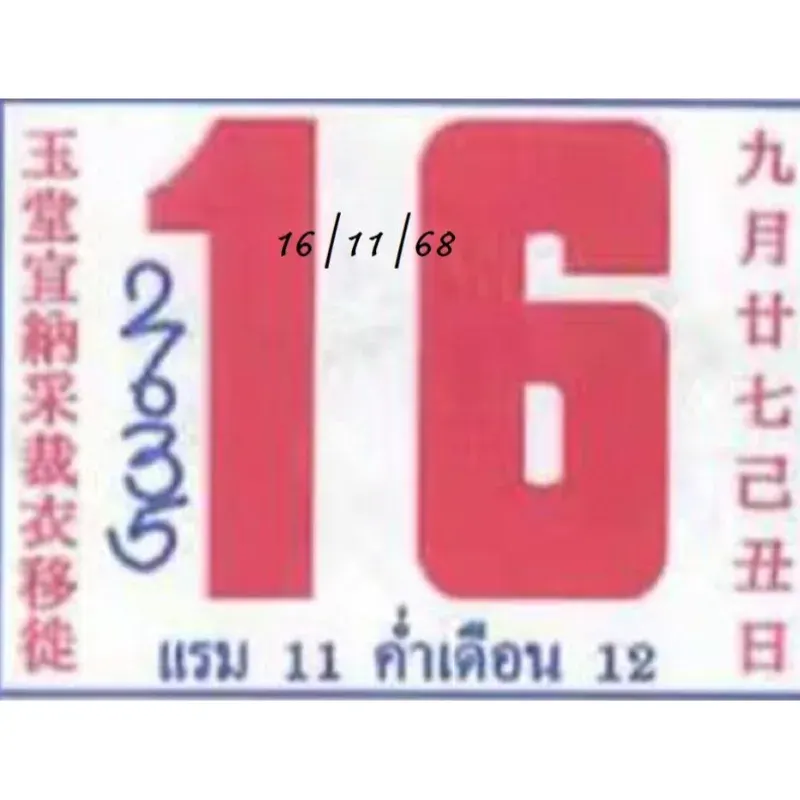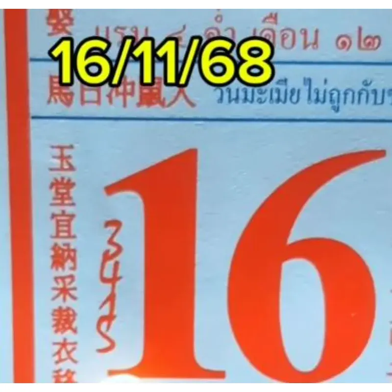 เลขปฏิทินจีนเป็นอีกหนึ่งความเชื่อ ซึ่งในแต่ละฉบับก็จะมีตัวเลขที่แตกต่างกันออกไป ส่วนในงวดนี้เลขปฏิทินจีน 16/11/68 ได้รวบรวมมาหลายฉบัน เพื่อเป็นแนวทาง