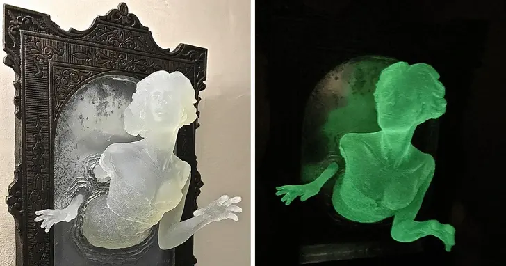 1. นี่คือรูปปั้นผีที่ทำจากกระจกยุควิคตอเรียนที่โผล่ออกมาจากกระจกโบราณ มันเรืองแสงในความมืด !