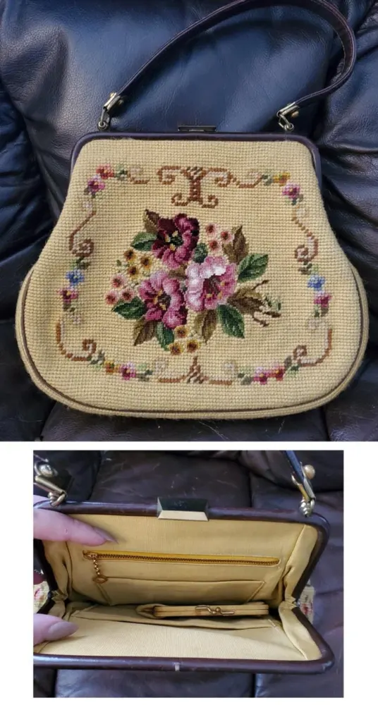4. ตอนนี้ฉันได้เป็นเจ้าของที่แสนภาคภูมิใจกับกระเป๋าครอสติชจากยุค 30 ใบนี้ มันมาพร้อมกับกระเป๋าใส่เหรียญแบบดั้งเดิมด้วย !