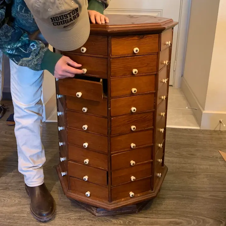 17. ผมได้ตู้ไม้เก็บของโบราณมา มันมี 72 ลิ้นชักและหมุนได้ !