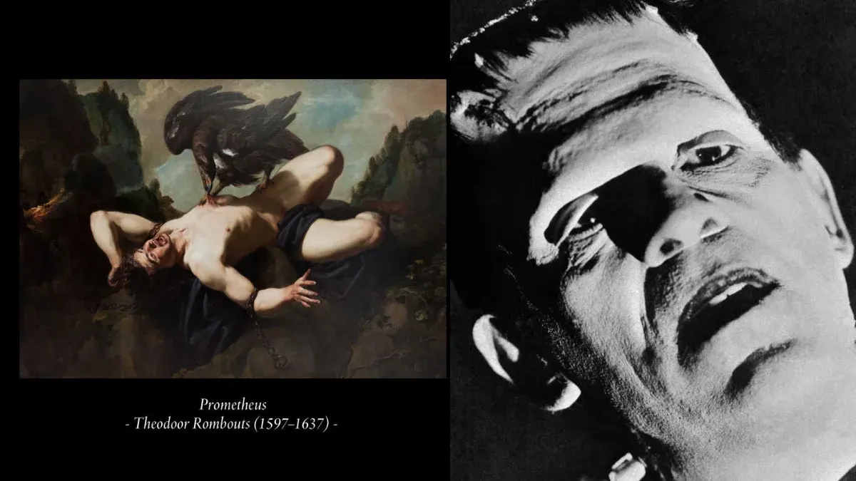 ในปี 1818 แมรี่ เชลลี ได้ตีพิมพ์วรรณกรรมเรื่อง Frankenstein; Or, The Modern Prometheus ถ่ายทอดเรื่องราวของวิคเตอร์ แฟรงเกนสไตน์ นักวิทยาศาสตร์ผู้มัวเมากับการไขปริศนาแห่งชีวิต เขาทะเยอทะยานที่จะเอาชนะธรรมชาติด้วยการสร้างสิ่งมีชีวิตขึ้นจากซากศพ แต่กลับสร้าง “อสุรกาย”' ที่นำมาซึ่งโศกนาฏกรรมและความรุนแรงไม่สิ้นสุด แท็กไลน์ "The Modern Prometheus" สะท้อนถึงแรงบันดาลใจจากตำนานเทพปกรณัมกรีกของโพรมีธีอุส ผู้สร้างมนุษย์จากโคลนและถูกลงทัณฑ์จากการขโมยไฟศักดิ์สิทธิ์มาให้มนุษย์ ไฟที่นำมาซึ่งความก้าวหน้า แต่ก็เป็นต้นกำเนิดของความขัดแย้งไม่รู้จบ