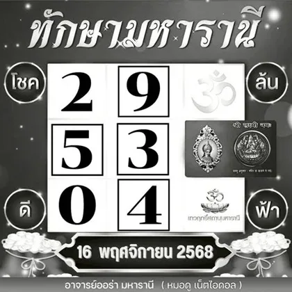 เลขเด็ด "ทักษามหารานี" งวดวันที่ 16 พฤศจิกายน 68..ส่องเลย เลขไหนเข้าวิน!