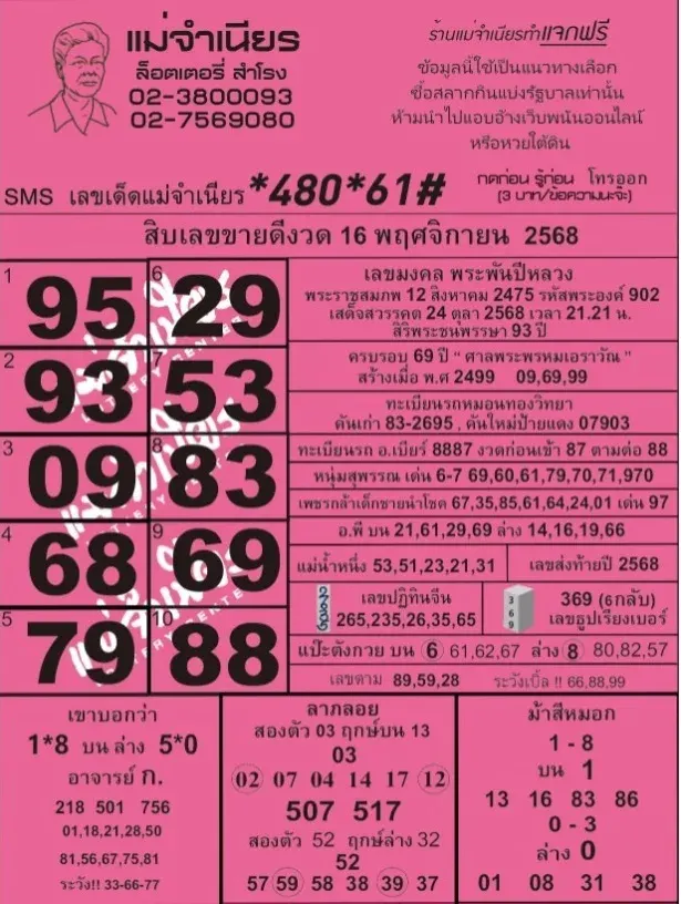 เลขเด็ด "แม่จำเนียรล็อตเตอรี่" งวดวันที่ 16 พฤศจิกายน 68 มาแล้ว!..คอหวยส่องด่วน!!
