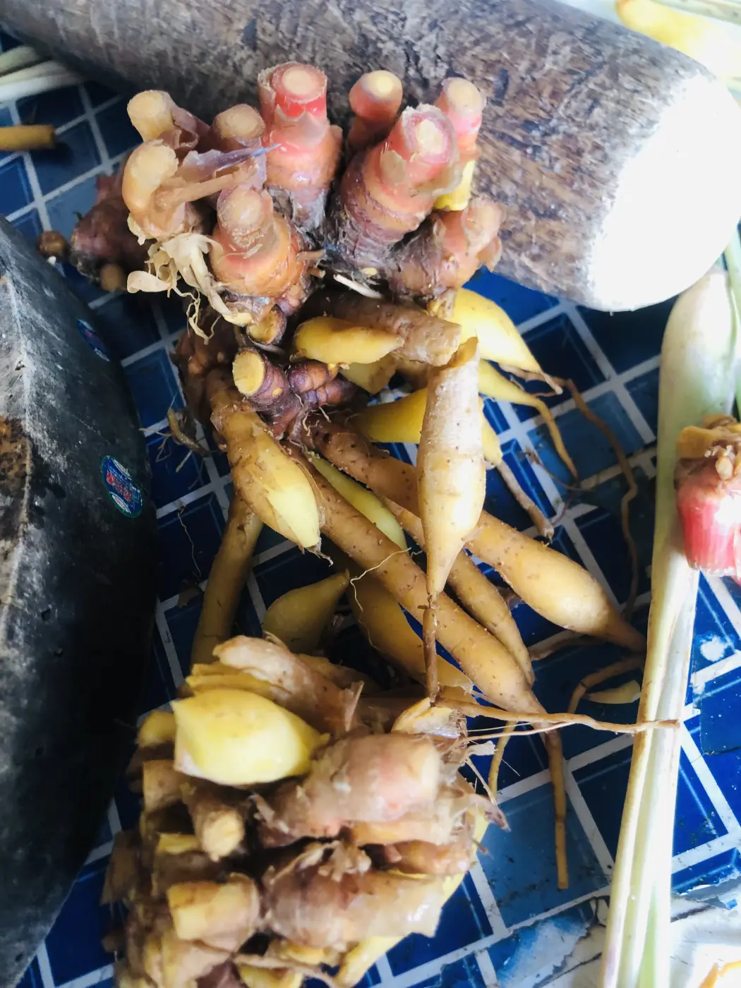 สิ่งที่เรานั้นเห็นนั้นเรียกว่ากระชาย กระชายนั้นจะทำให้หอมอ่อนๆ ปลาจะไม่คาวและน้ำยาป่านั้นจะหอมกรุ่นเมื่อนำไปรากกันกับขนมจีนที่มีในส่วนของรสชาติ ที่นิ่มไม่หนักไปทางไหน เราอาจจะต้องใส่ความเค็มให้เยอะหน่อยเพราะว่าจะได้มีความพอดีเมื่อเรานั้นนำไปใส่ในส่วนของขนมจีนที่มีรสชาติจืดสนิท