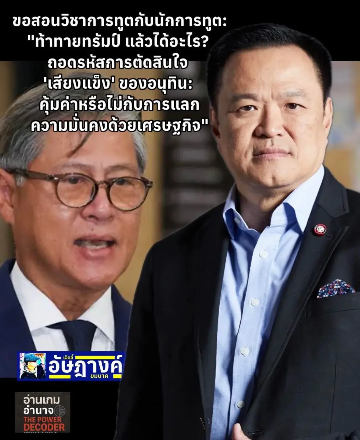 ผมไม่เคยเป็นทูตหรือข้าราชการกระทรวงต่างประเทศ แต่ผมเชื่อว่า กรณีที่นายกรัฐมนตรีอนุทินมีท่าทีที่ "เสียงแข็ง" ต่อประธานาธิบดีทรัมป์ จนนำมาซึ่งการระงับการเจรจาภาษีนั้น