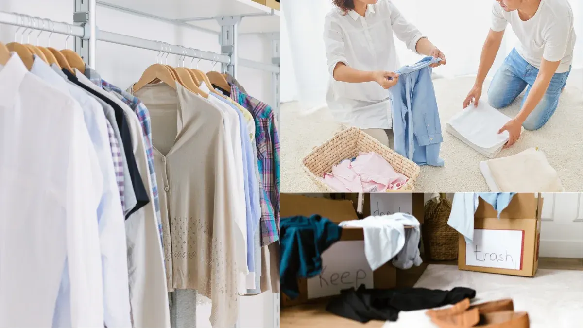 1.หมวดเสื้อผ้า ขั้นตอนแรก คือ การเอาเสื้อผ้าทั้งหมดมากองรวมกัน จะเห็นได้ชัดเลยว่ามีเสื้อผ้าเยอะมากแค่ไหน ทั้งตัวที่ซื้อมาแล้วไม่ได้ใส่ เสื้อตัวโปรดที่หายไปนาน ถ้าต้องเลือกแบบผิวเผินอาจจะตัดใจยากไปหมดจนไม่กล้าทิ้งซักตัว แต่ทริกง่าย ๆ คือ ต้องสัมผัสเสื้อผ้า เลือกทีละตัวเลยว่าตัวไหนจุดประกายความสุข รู้สึกดี spak joy ตัวนั้นก็เก็บไว้ ส่วนตัวไหนที่เคยซื้อมาไม่ใส่แปลว่า เราไม่ชอบสไตล์นี้ ขอบคุณและบอกลาซะ