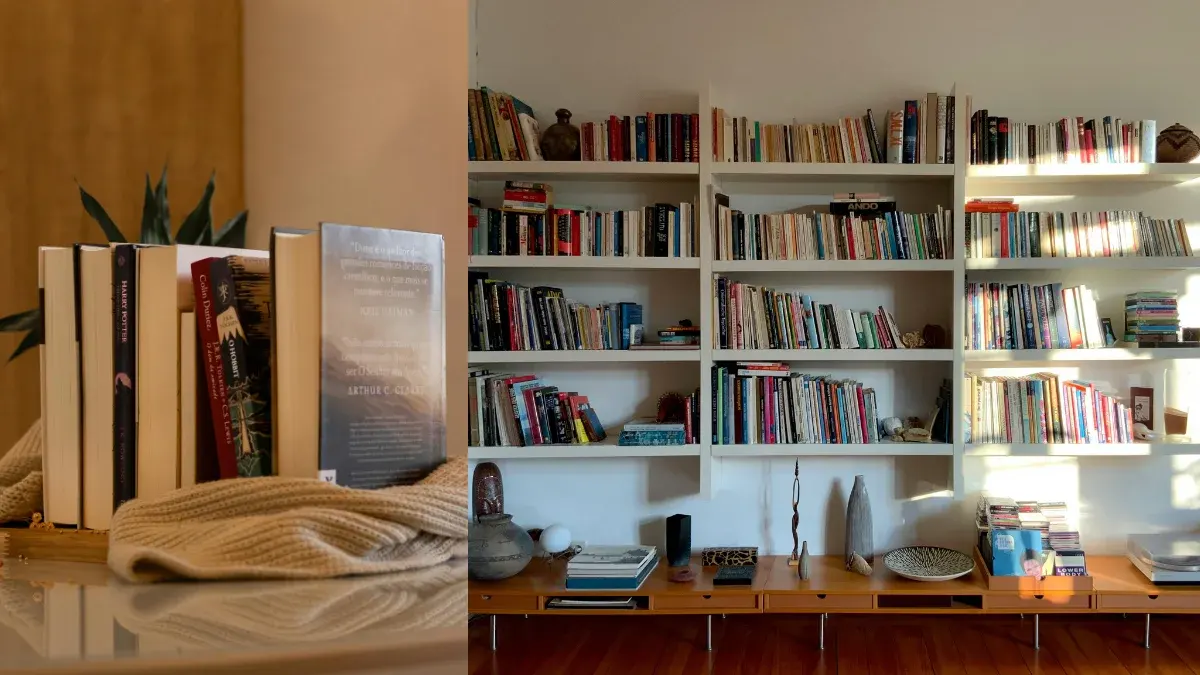2.หมวดหนังสือ แนะนำให้หยิบออกมาดูที่ละเล่มเช่นกัน แล้วถามตัวเองว่าหนังสือเล่มไหนอยากอ่านอีกรอบ เล่นไหนอยากพกติดตัวไปข้างนอก ถ้าสัมผัสแล้ว spark joy รู้สึกดีที่ได้อ่านแสดงว่าควรเก็บไว้ ทริกการจัดเก็บ คือ จัดลำดับการเก็บโดยนำเล่มที่ใช้บ่อย วางไว้ในที่หยิบสะดวก หรือ นำมาตกแต่งห้องไปในตัว อย่างการทำชั้นวางติดผนังเพื่อวางหนังสือโชว์สวย ๆ