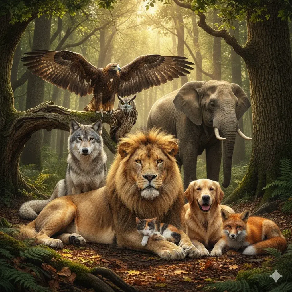 มีสัตว์ให้เลือกดังนี้ 🦁 🐺 🦅 🦉 🐱