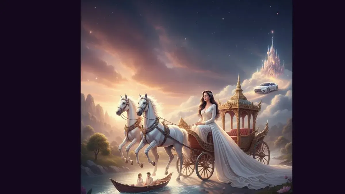 นี่คือสัญลักษณ์คลาสสิกที่ทรงพลังที่สุดและเป็นนิมิตหมายมงคลสูงสุด การฝันเห็น ราชรถ หรือ รถม้าที่ถูกตกแต่งอย่างวิจิตร ไม่ว่าจะกำลังนั่งอยู่บนนั้น หรือเห็นมันมาเทียบท่ารอ แสดงถึงการได้คู่ครองที่มีเกียรติ ยศศักดิ์ หรือการได้รับความรักความนับถืออย่างสูงจากการสมรส